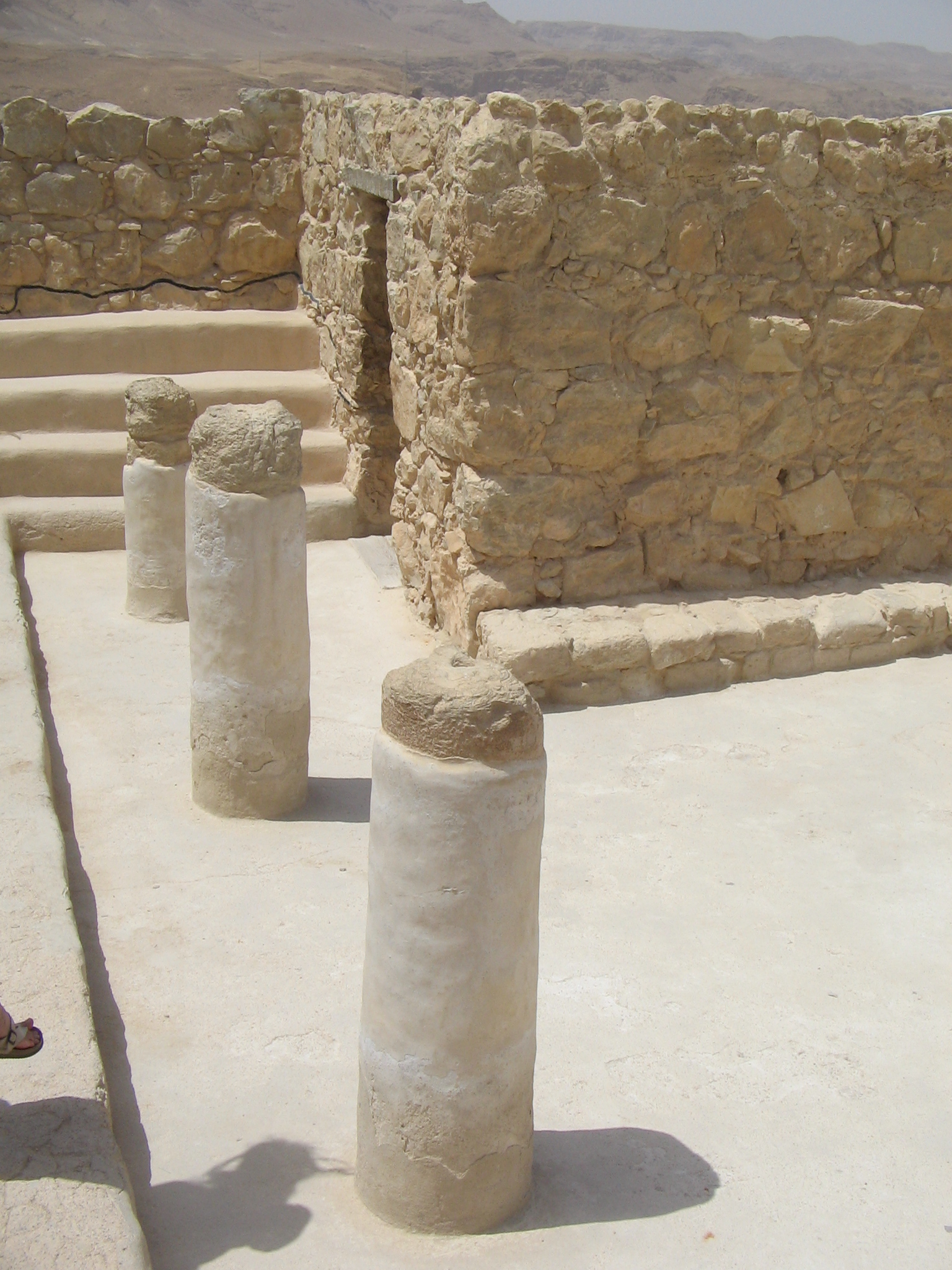Другое строение, относящееся к временам зелотов, - это синагога. О том, что это действительно синагога, говорят скамьи, окружающие центральную площадку, и, главное, ориентация здания на восток, в сторону Иерусалима. Поскольку эта синагога относится ко времени Второго Храма, она является старейшей среди всех, обнаруженных до сих пор в Израиле. Синагога исполняла свою религиозную роль еще при Ироде, поскольку известно, что среди придворных этого правителя, прибывших вместе с ним в Масаду, было много набожных иудеев.